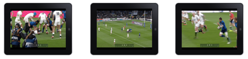 Colleagues in the Sports Library were able to identify a rugby match (England versus France six nations 2015) in which the players managed to score 11 tries which gave me enough options to create test materials. These were created using the broadcasted coverage of the match, on the TV, coupled with a video stream of an alternative camera coverage of the tries on the Tablet.