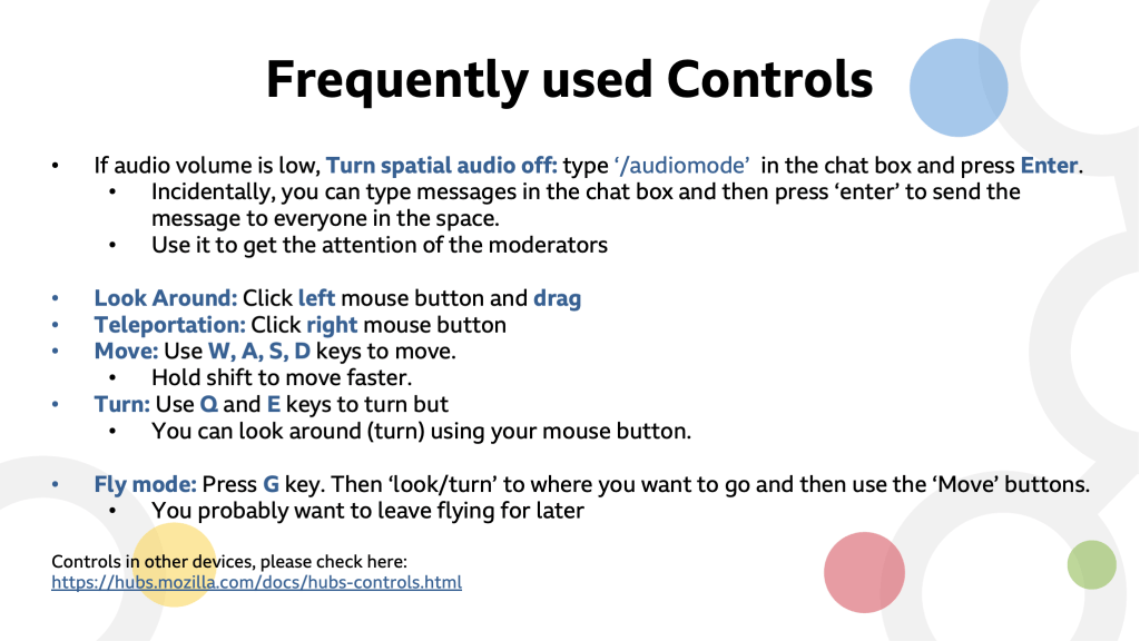 In addition to the mission, there was a reference card where the kids could find instructions on how to navigate a virtual room in Mozilla Hubs.
